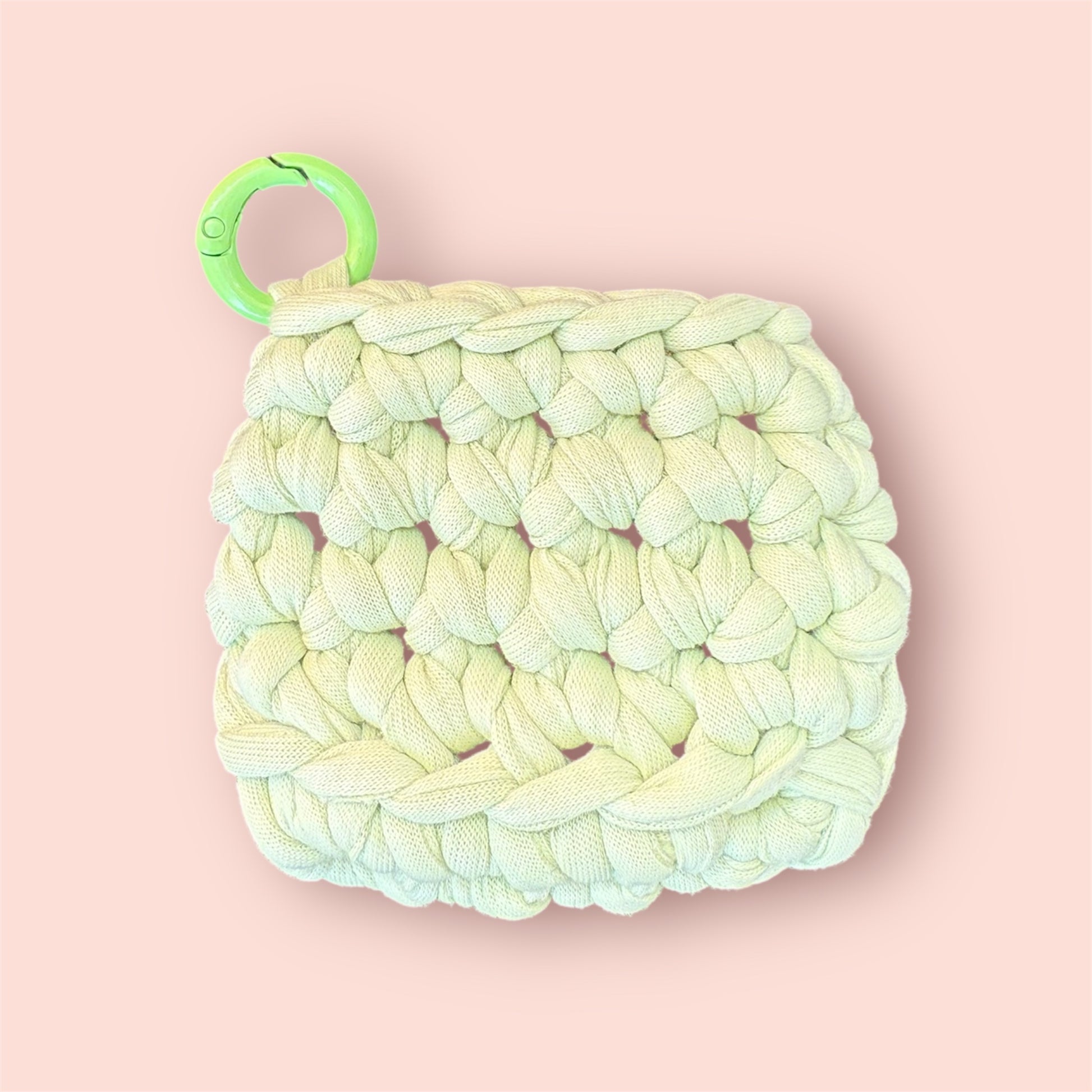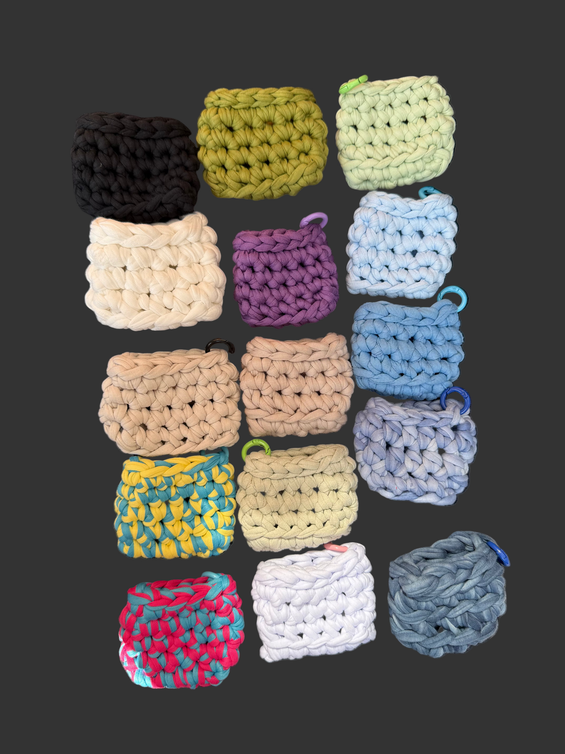 Hand crocheted using 100% recycled cotton T-Shirt yarn, soft, sustainable & washable.