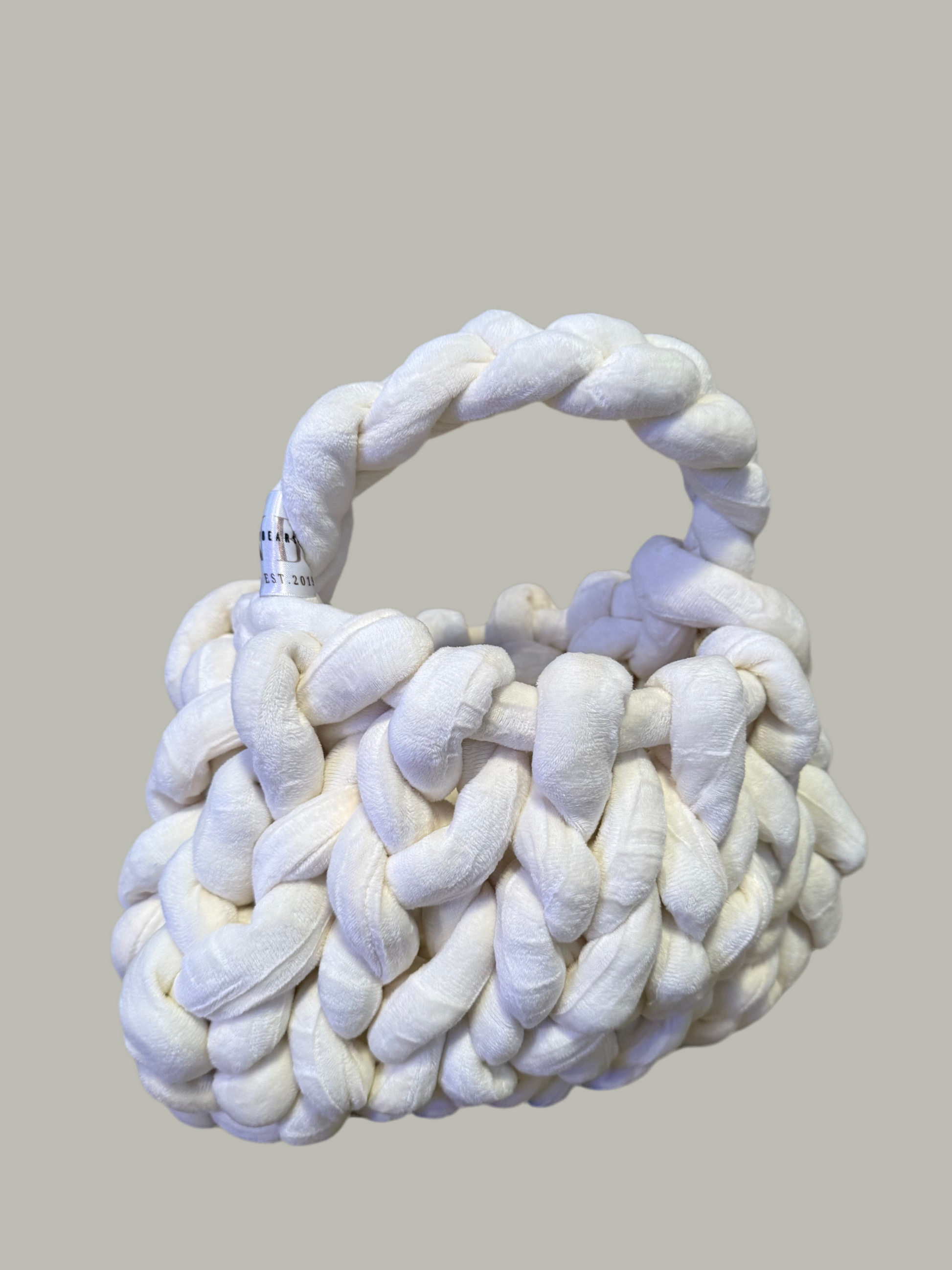 Hand crocheted using 100% recycled yarn, soft & sustainable.
